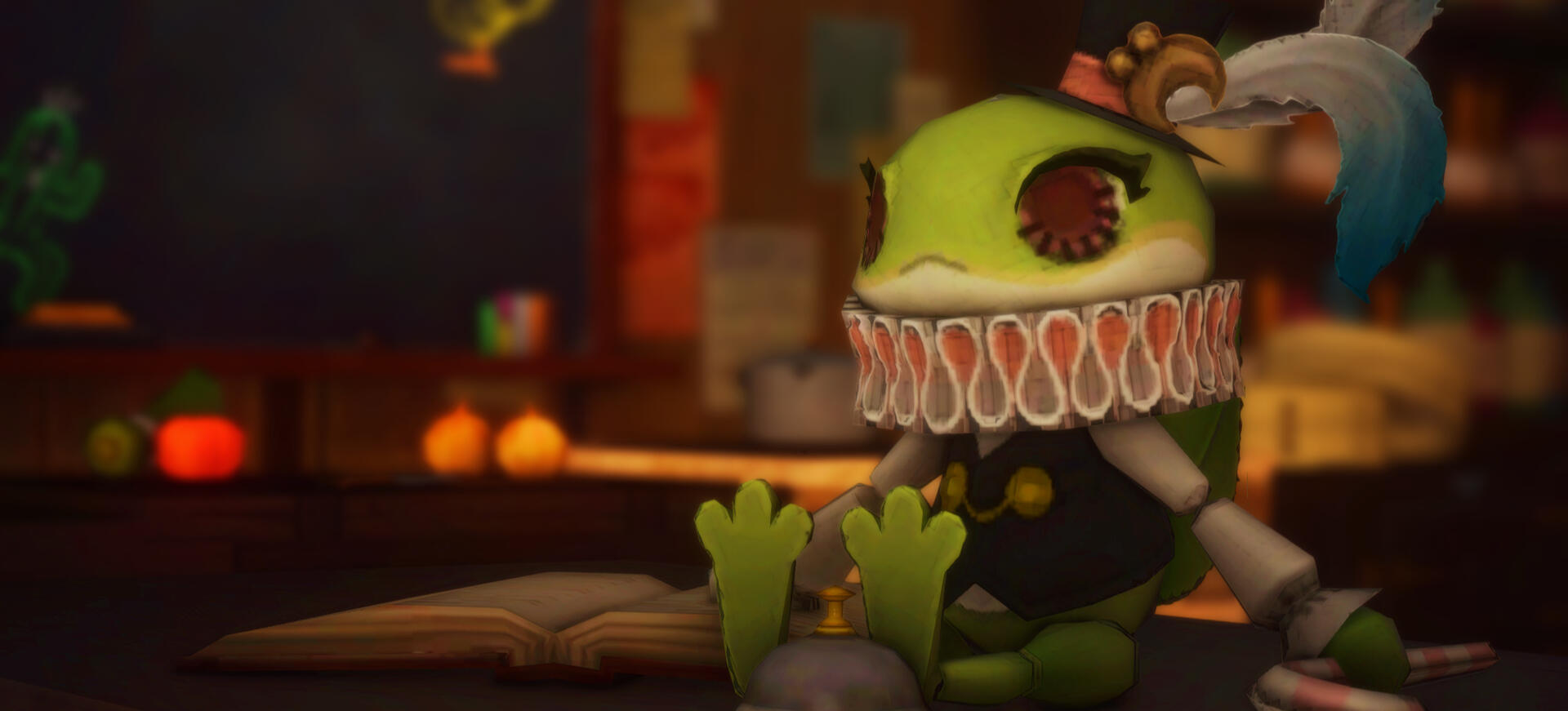 Cosmo - A mammet that is made in the form of a bipedal frog. He is a friendly mammet, happy to assist guests with finding books and assisting with library services.