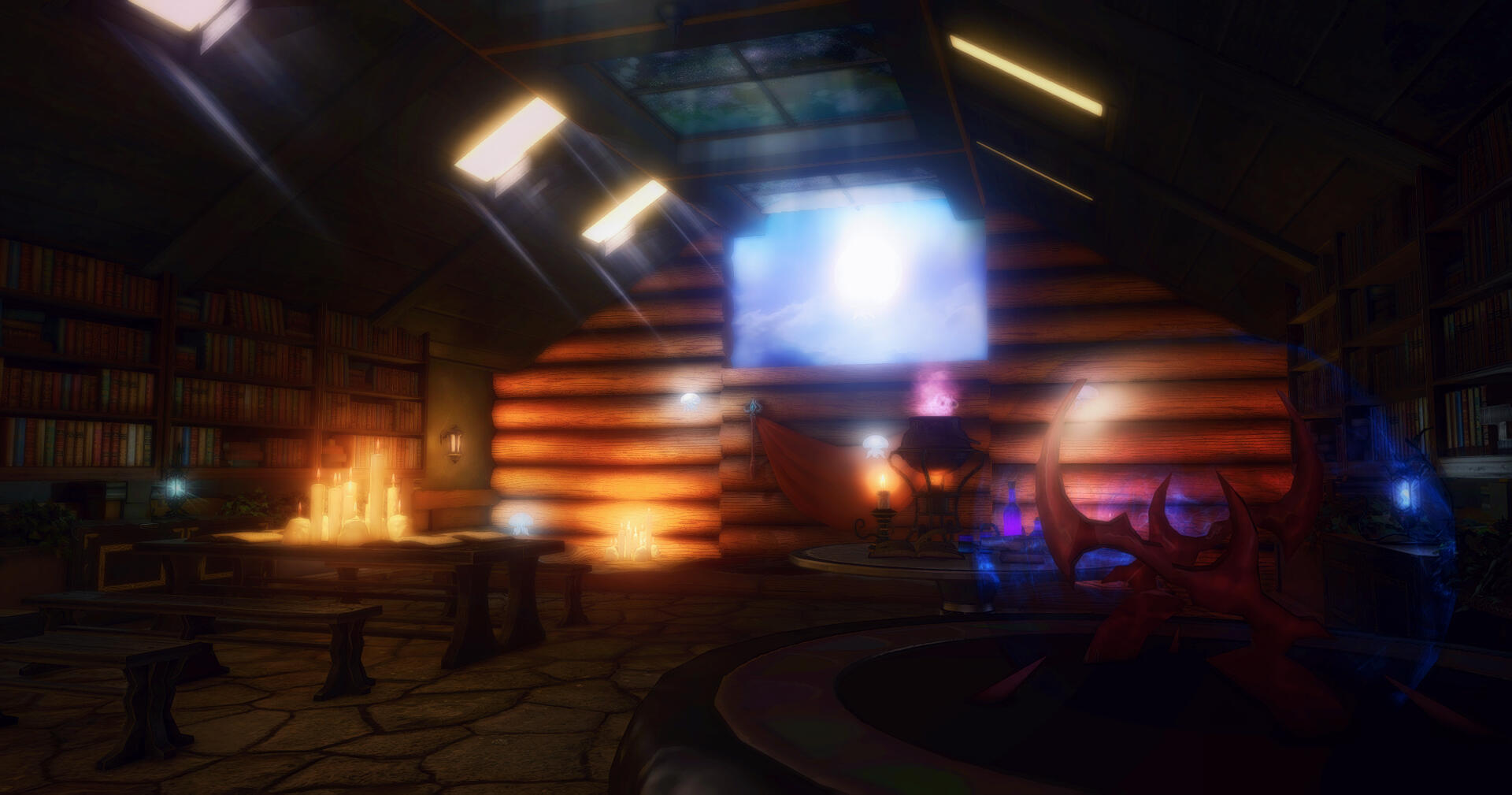Arcanum (#007)A room dedicated to magic and magic study. This room is covered in safety wards and enchantments so guests may practice magic safely.